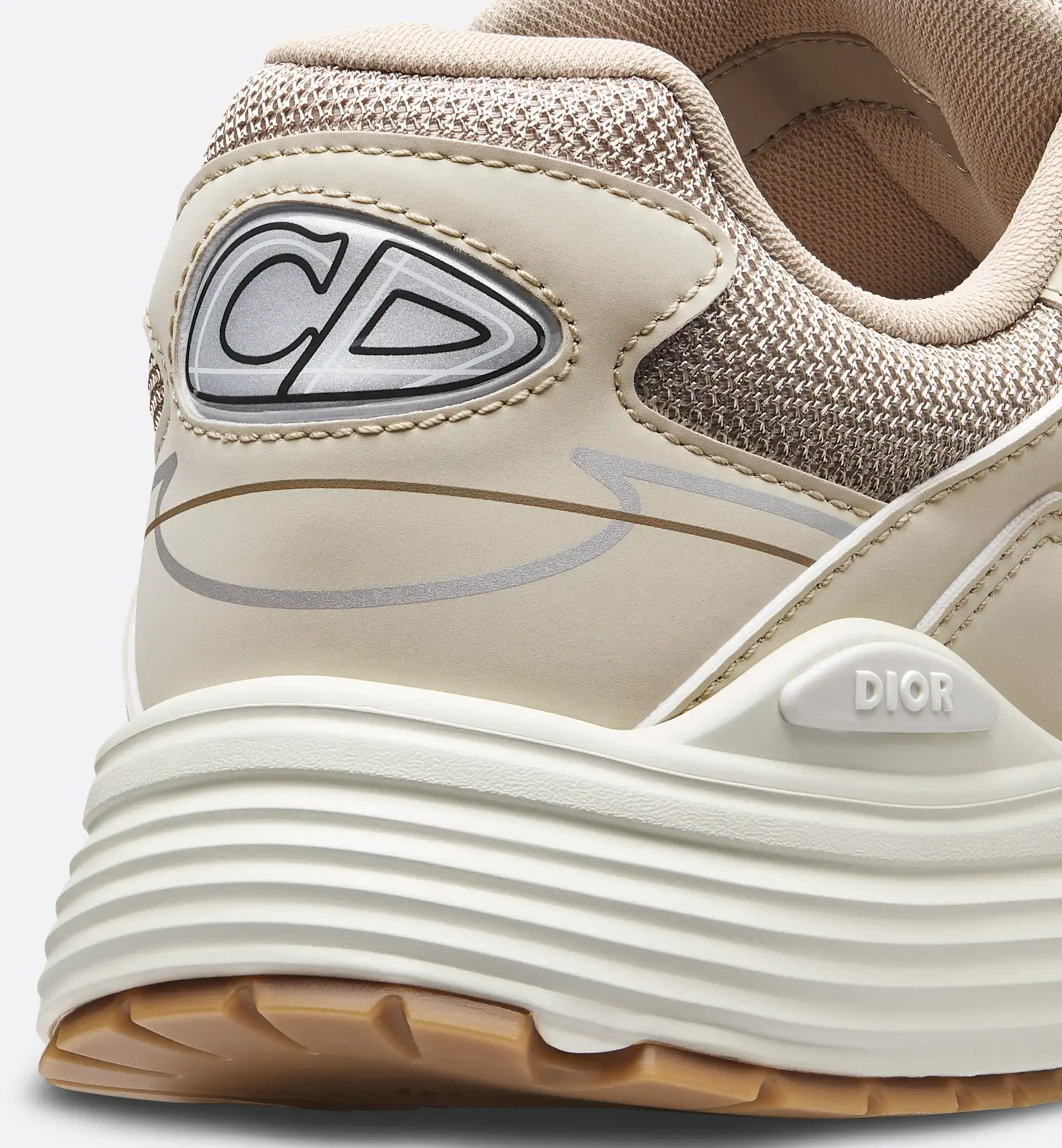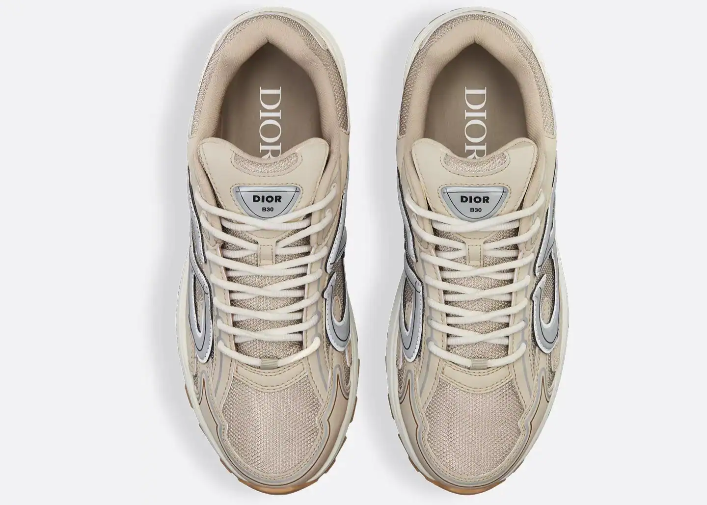 The Dior B30 Cream Mesh / Technical Fabric sneakers are a striking embodiment of Dior’s commitment to blending luxury with performance. These sneakers are crafted with meticulous attention to detail, featuring an upper that combines cream-colored mesh and technical fabric. The choice of materials not only ensures breathability and comfort but also adds a contemporary, stylish flair that aligns with Dior’s fashion-forward ethos. The mesh offers flexibility and enhances airflow, making these sneakers suitable for both casual wear and more active pursuits. Additionally, the technical fabric provides durability and a lightweight feel, ensuring that the shoes are both practical and elegant.