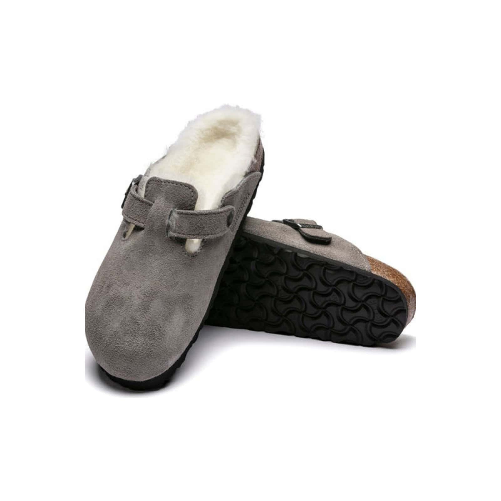 The Boston by BIRKENSTOCK is a classic go-to clog. The Boston has a legendary status thanks to its sophisticated, individually adjustable design. This classic model comes in an especially cozy version with genuine shearling lining the footbed and the upper. The perfect shoe for cozy winter evenings! The upper is made from soft suede.