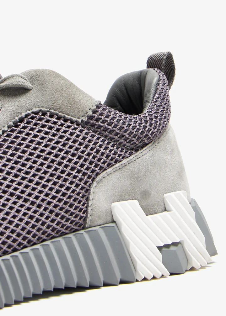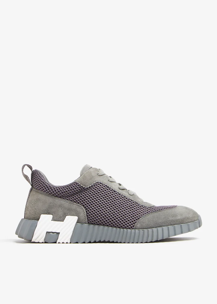 The coveted Bouncing sneakers by Hermès are crafted from technical mesh and suede goatskin with the classic “H” logo on the sole. They feature a light rubber sole, a lace-up front and leather lining. This style comes in French sizing and with the original box and dust bag. This pre-owned pair will make a great contribution towards sustainability and an even greater contribution towards your wardrobe.