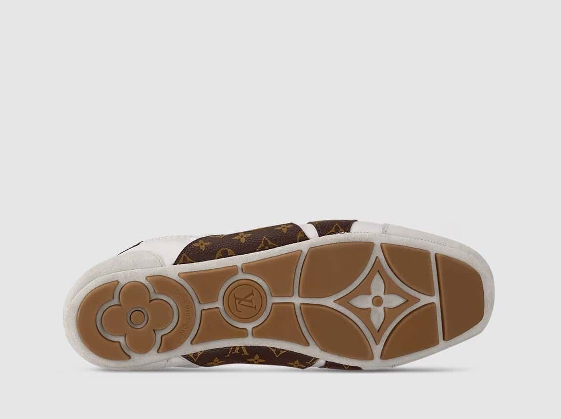 The LV Sneakerina is a fashion-forward model combining the lightness of a ballerina with the comfort of a sneaker. This version comes in soft lambskin with trim in suede calf leather and an LV signature in Monogram canvas on the side. Versatile enough to accompany a variety of looks, it features a supple sacchetto construction and TPU outsole.
